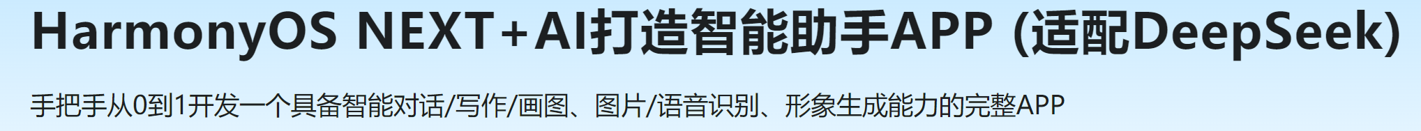 HarmonyOS NEXT+AI打造智能助手APP (适配DeepSeek)视频教程。想在竞赛、毕设或面试中脱颖而出,开发一款AI智能应用APP是绝佳选择。如果你有志从事AI智能应用开发,却缺乏开发技能和完整的流程指导,不用担心,本课程将带你从零开始,完整开发一款AI智能助手APP。课程涵盖6大核心功能模块——智能对话、写作、绘图、图片识别、语音识别、形象生成等;通过模块化和通用组件化开发,帮助你快速掌握AI助手应用的开发流程。同时,你还将学习如何使用仓颉开发原生鸿蒙应用,实现从创意到落地的全流程,掌握移动端与AI融合的先进开发模式。