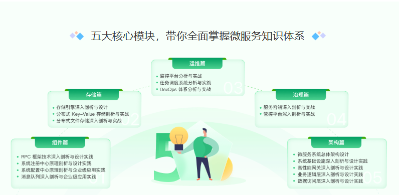●案例驱动: 30+案例,带你深入实践并理解微服务架构体系。 ●体系全面:从组件、架构、数据存储、运维、服务治理到业务系统落地全覆盖。 ●深入原理:深入剖析微服务核心组件及框架,知其然更知其所以然。 ●代码落地:自研组件框架到自研业务系统,全面提升开发能力。