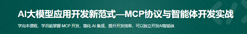 学完本课程,学员能掌握 MCP 开发,简化 AI 集成,提升开发效率,可以独立开发AI智能体