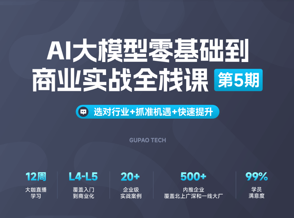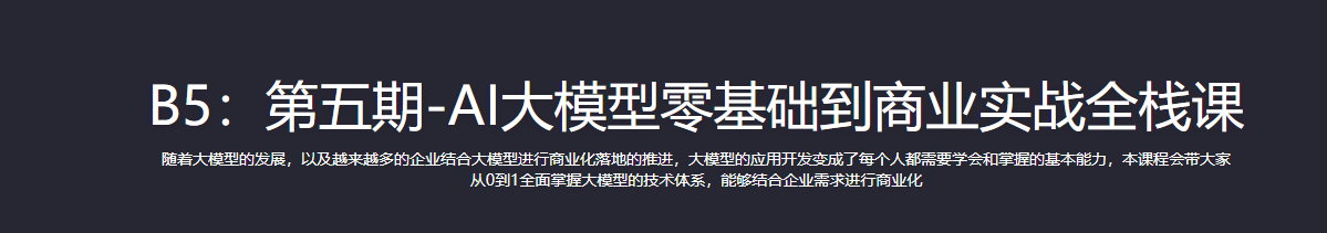 随着大模型的发展,以及越来越多的企业结合大模型进行商业化落地的推进,大模型的应用开发变成了每个人都需要学会和掌握的基本能力,本课程会带大家从 0 到 1 全面掌握大模型的技术体系,能够结合企业需求进行商业化