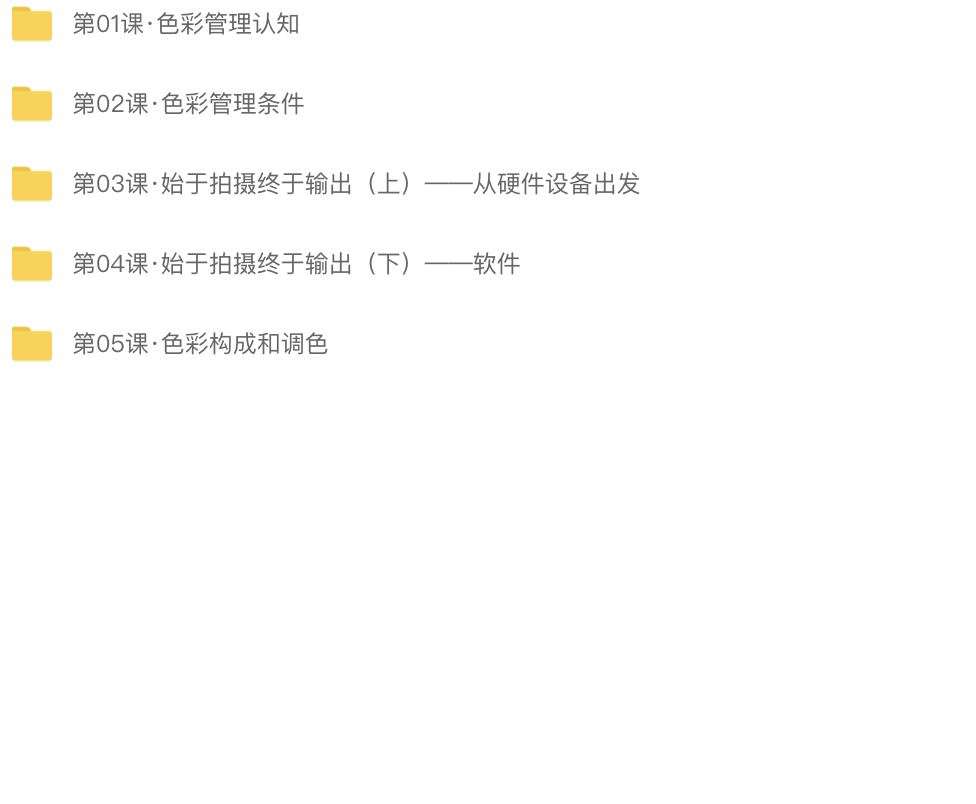 本课从色彩认知切入,从色彩理论起源到数码照片后期技术,涵盖关于数码影像的色彩内容,帮助数码影像用户通过理论学习和器材操作实践,对色彩的艺术和科学进一步加深领悟,接触灵活多样的数码影像工作流程。