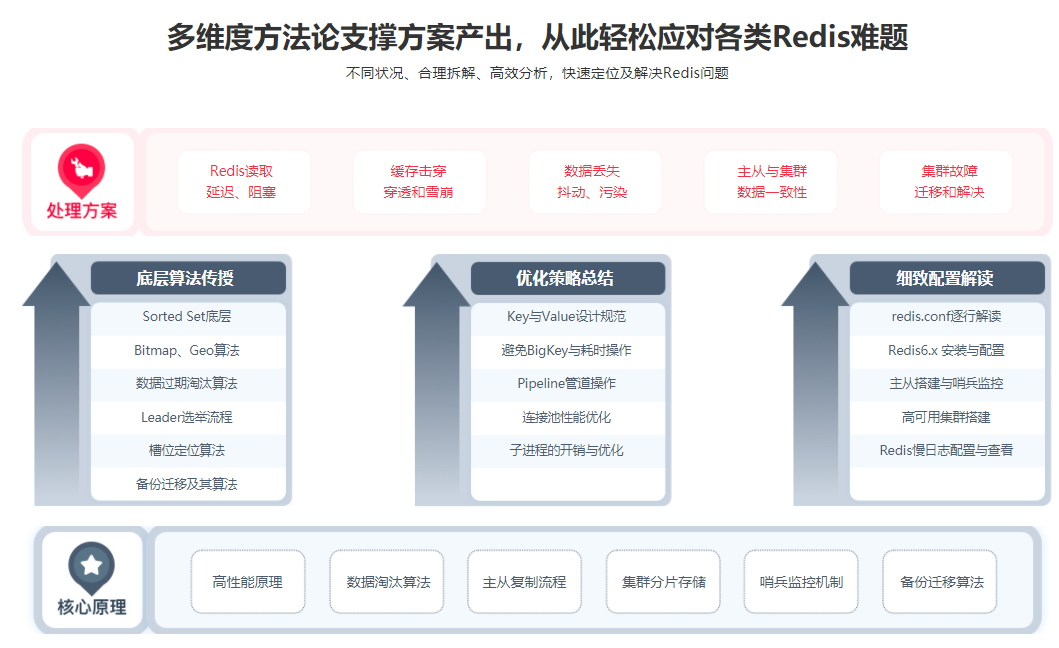本课程以一个实战项目为主线,整合Redis各种问题场景,不断改造项目,以问带学。学完本课后,面对Redis相关问题,你将能够快速进行排查与修复,无论实际工作还是跳槽面试你都将游刃有余。